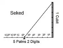 El seked (o seqed) fue una antigua unidad de medida egipcia usada para medir la inclinación de las caras triangulares de una pirámide recta.[1] Se utilizó la medida de longitud egipcia conocida como «codo real» (meh). Dicho codo real se subdividía en siete «palmos» (shesep), y cada palmo se divide en cuatro «dedos» (yeba). Por lo tanto, se expresó la inclinación de las pendientes medida como el número de palmos y dedos horizontales por cada codo real vertical.