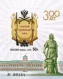 ![]() | 01.02 | 1) El emblema original de la Fábrica de Armas de Tula, fundada por el zar Pedro I en 1712 en la localidad de Tula La hoja bloque muestra la fachada del edificio antiguo de la fábrica con una estatua de Pedro I, en primer plano, representado como un herrero | 37,0 × 50,0 (70 × 78) | 50,00 |