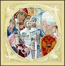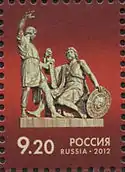 ![]() | 02.11 | 1) Los héroes nacionales Dmitri Pozharski y Kuzmá Minin, cuyo levantamiento de 1612 culminó con la liberación rusa del yugo de la Mancomunidad de Polonia-Lituania La hoja bloque muestra adicionalmente al patriarca Hermógenes, el escudo de armas de esa época y un icono de la Virgen de Kazán, de fondo una vista panorámica del Kremlin de Moscú | 30,0 × 42,0 (89x90) | 40,00 |