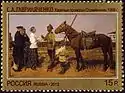 ![]() | 19.09 | 1) Dibujo que representa al héroe ruso Riúrik (fundador del Rus de Kiev, el primer Estado paneslavo) con una familia joven y un soldado; de fondo, unos campesinos que trabajan en la siega | 50,0 × 37,0 | 10,00 |