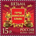 ![]() | 20.04 | Cinco ciudades rusas que portan la distinción honorífica "Ciudad de Gloria Militar", en el sello se ve el nombre de la respectiva ciudad acompañado del emblema de la insignia 1) Viazma | 37,0 × 37,0 | 15,00 |