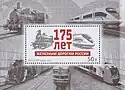 ![]() | 30.09 | 1) El cartel oficial del 175º aniversario de los Ferrocarriles Rusos La hoja bloque muestra trenes y locomotoras de diferentes épocas: una locomotora de vapor P36 (serie del año 1950), una locomotora eléctrica VL10 (en funcionamiento entre 1961-1986), el tren eléctrico ED9M y el tren de alta velocidad Sapsan | 65,0 × 32,5 (110 × 80) | 50,00 |