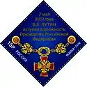 ![]() | 07.05 | 1) Fragmento del collar del presidente de Rusia y la leyenda "7 мая 2012 года В.В. Путин вступил в должность Президента Российской Федерации" ("7 de mayo de 2012 -V. V. Putin asumió el cargo de presidente de la Federación de Rusia") | 37,0 × 37,0 | 15,00 |