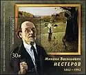 ![]() | 17.05 | 1) Autorretrato del pintor Mijaíl Nésterov En la hoja bloque se reproduce el cuadro La visión del joven Bartolomé ("Видение отроку Варфоломею", 1890) | 30,0 × 42,0 (83 × 73) | 30,00 |