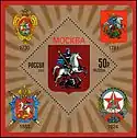 ![]() | 30.11 | 1) El escudo de Moscú En la hoja bloque se muestran cuatro escudos históricos de Moscú | 45,0 × 45,0 –romboide– (90 × 90) | 50,00 |