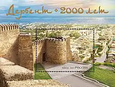 ![]() | 02.10 | 1) Las murallas de la Ciudadela de Derbent La hoja bloque muestra una vista de la ciudad | 50,0 × 37,0 (100 × 75) | 35,00 |