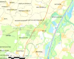 - Ubicación de Seltz en un mapa de sus comunas limítrofes (enlace roto disponible en Internet Archive; véase el historial, la primera versión y la última).