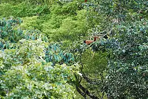La Reserva de la Biosfera Yasuní tiene al menos 70 especies de mamíferos. Esto incluye 13 especies de primates, incluido el mono lanudo plateado (Lagothrix poeppigii), el aullador rojo venezolano (Alouatta seniculus), el mono araña de vientre blanco (Ateles belzebuth) y el monje saki (Pithecia monachus). Otros mamíferos incluyen el tapir sudamericano (Tapirus terrestris), el pecarí de labios blancos (Tayassu pecari), el jaguar (Panthera onca), el delfín del río Amazonas (Inia geoffrensis), el tucuxi (Sotalia fluviatilis) y la nutria gigante (Pteronura brasiliensis).[3] La región es el hogar del murciélago espectral (espectro de Vampyrum), el murciélago más grande del Nuevo Mundo. Los mamíferos en peligro de extinción incluyen el mono araña de vientre blanco (Ateles belzebuth), la nutria gigante (Pteronura brasiliensis) y el tapir de montaña (Tapirus pinchaque).[1]