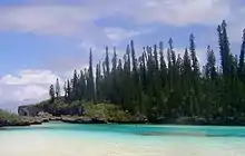 Los bosques de tierras bajas son generalmente una composición de especies mixtas, intercaladas con algunas zonas de una sola especie. Las coníferas predominantes son Araucaria columnaris, A. bernieri, Agathis lanceolata, A. ovata (Araucariaceae) y Dacrydium araucarioides, Dacrycarpus vieillardii y Falcatifolium taxoides (Podocarpaceae).