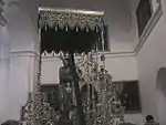Tiene tres tronos, el más conocido es El Cristo Verde siendo la imagen de Jesús más antigua, del siglo XVI. La Virgen de la Veracruz, imagen que representa a una dolorosa de expresivo rostro y gran belleza. el Cristo de la Sangre que es la única talla del Señor que se procesiona bajo palio en nuestra Semana Santa.