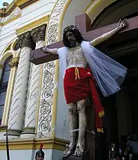 Desde arriba y de izquierda a derecha: Procesión de Jesús de los Milagros en Ciudad de Guatemala, procesión en la ciudad de Antigua Guatemala, procesión Divino Justo Juez en la ciudad de Quetzaltenango, procesión en la Catedral Metropolitana de la Ciudad de Guatemala, procesión en el Arco de Santa Catalina y una imagen de una alfombra de aserrín típica de Guatemala. | ||