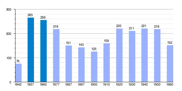 | Gráfica de evolución demográfica de Semillas[3] entre 1842 y 1960 |