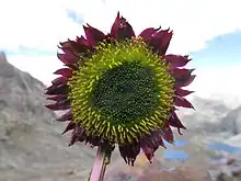 Hierba erguida, que crece de hasta 15 cm de alto, sus brácteas moradas y flores amarillas, relativamente grande de unos 5 cm de diámetro, hojas basales aserradas y cortas de 5-10 cm, que generalmente crece en zonas andinas entre los 4300-4850 m,[2] esta se le encuentra en Quitaracsa al norte de la cordillera blanca entre los 4400 y 4800 m.s.n.m., cuya flor de esta planta de color amarilla relativamente grande e inclinada hacia el suelo.[3]