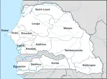 Senegal se subdivide en 14 regiones,[20] cada una de ellas administrada por un Conseil Régional (Consejo Regional) elegido según el peso de la población al nivel de cada Arrondissement. El país está además subdividido en 45 Départements, 103 Arrondissements (ninguno de los cuales dispone de funciones administrativas) y por Collectivités Locales, cada una de las cuales elige oficiales administrativos.[21]