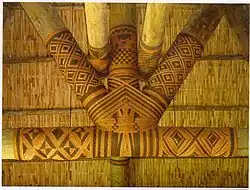 Magimagi sennit de Fiyi, alrededor de fijaciones de techo de madera.