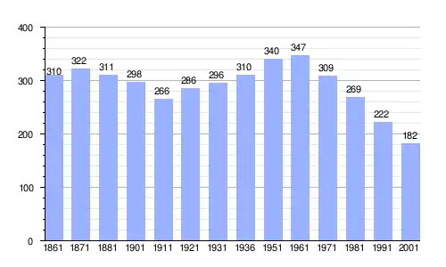 | Gráfica de evolución demográfica de Seppiana entre 1861 y 2001 |