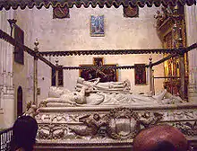 - En realidad se trata de un cenotafio más que de un sepulcro o sarcófago porque no tiene los cuerpos dentro sino que están enterrados abajo en la cripta.