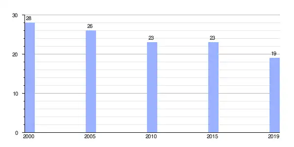 | Gráfica de evolución demográfica de Serén (lugar) entre 2000 y 2019 |