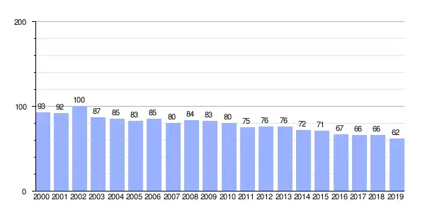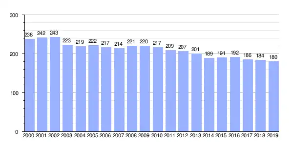 | Gráfica de evolución demográfica de Ser (parroquia) entre 2000 y 2019 |