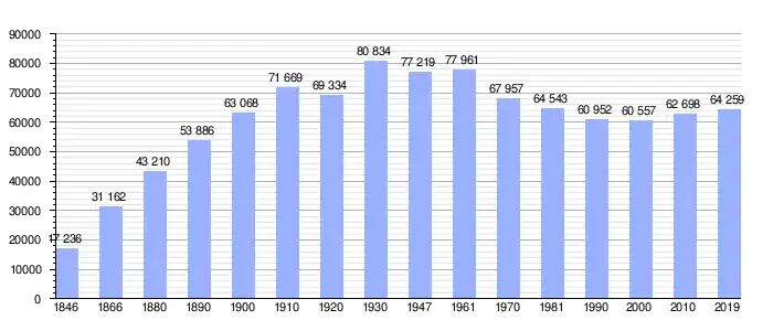 Forma con Lieja, Herstal, Saint-Nicolas, Ans y Flémalle la aglomeración de Lieja (600 000 habitantes). La ciudad, 24º municipio belga en términos de habitantes, contaba el 1 de enero de 2019 con 64 259 habitantes.[1]