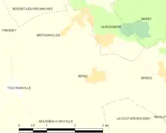 - Situación de Serez en un mapa de Francia y de comunas limítrofes (en francés)