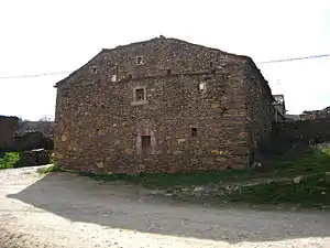 - Las casas tradicionales son muy humildes y respetan todas la arquitectura adecuada para esta zona. Constan de una sola planta de forma rectangular. Se cubren con un tejado a tres aguas que sobresalen de los muros. El edificio del Ayuntamiento y escuela se ha perdido.