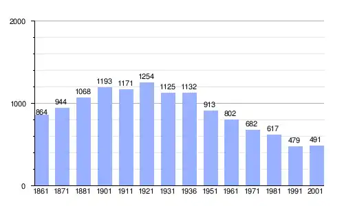 | Gráfica de evolución demográfica de Serralunga d'Alba entre 1861 y 2001 |