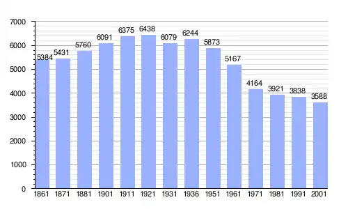 | Gráfica de evolución demográfica de Serrastretta entre 1861 y 2001 |