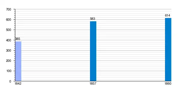 | Gráfica de evolución demográfica de Serrato[4] entre 1842 y 1860 |
