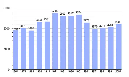 | Gráfica de evolución demográfica de Serrungarina entre 1861 y 2001 |
