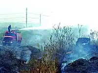 Bomberos israelíes apagando un incendio forestal.