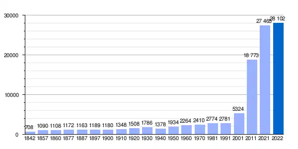 Población de derecho (1842-1991, excepto 1857 y 1860 que es población de hecho) o población residente (2001-2021) según los Censos de Población desde 1842. Población según el padrón municipal de 2022 del INE. |