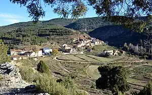 Vista general del caserío de Sesga (Ademuz), desde el cementerio.