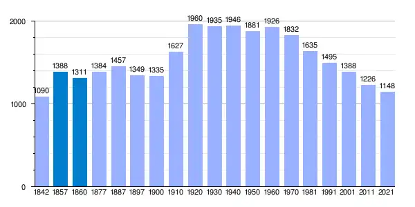 | Gráfica de evolución demográfica de Sesma[1] entre 1842 y 2021 |