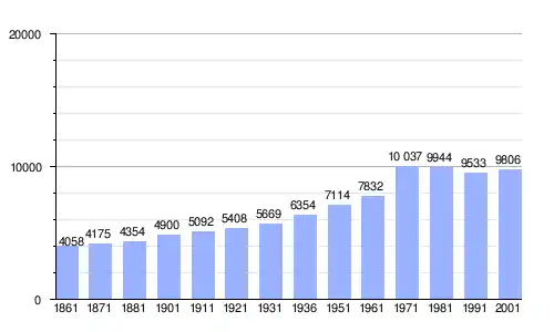 Gráfica de evolución demográfica de Sesto Calende entre 1861 y 2001