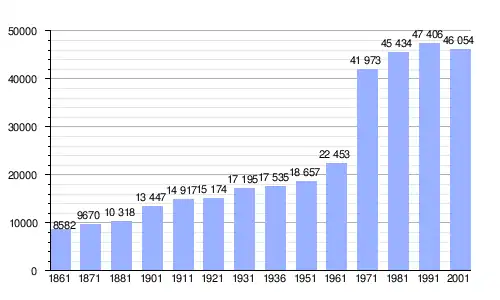 | Gráfica de evolución demográfica de Sesto Fiorentino entre 1861 y 2001 |