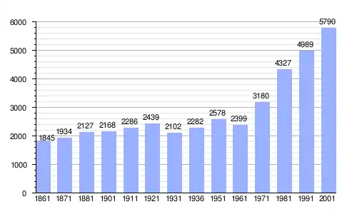 | Gráfica de evolución demográfica de Settala entre 1861 y 2001 |