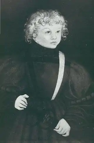 ![]() Príncipe Severino de Sajonia, pintura por Lucas Cranach el Viejo (1526). | ||