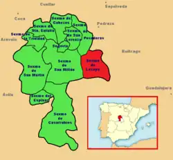 ![]() Ubicación del sexmo de Lozoya dentro de la Comunidad de Ciudad y Tierra de Segovia
