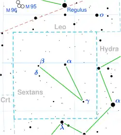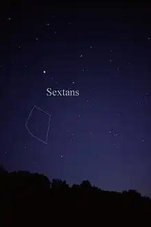 Sextans (el sextante) es una constelación menor ecuatorial que fue introducida en el siglo XVII por Johannes Hevelius. La introdujo en recuerdo al instrumento que perdió en un incendio. Está situada entre Leo e Hydra y no es una constelación particularmente brillante. No hay mitología asociada a esta constelación.