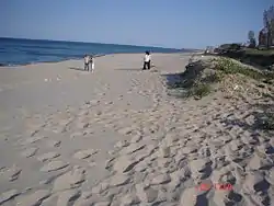En la playa principal de la ciudad hay un gran aparcamiento y varios búngalos antiguos junto a un gran restaurante que sirve a los turistas de hoy en día en los meses de verano.