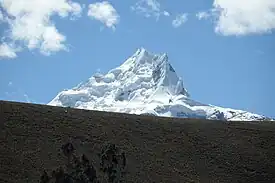 ![]() Nevado Shacsha desde el centro poblado de Canrey Chico, distrito de Olleros. | ||