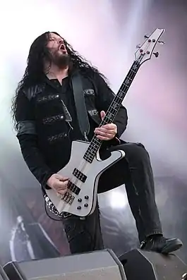![]() Sharlee D'Angelo junto a Arch Enemy, 2014. | ||