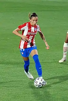 En 2021 fichó por el Atlético de Madrid.[21] Debutó con el equipo rojiblanco el 4 de septiembre de 2021, dando una asistencia de gol en la victoria por 5-0 sobre el Rayo Vallecano en la primera jornada de liga.[22] El 31 de octubre marcó su primer gol como rojiblanca ante el Villarreal.[23] Aunque al principio le costó entrar en el equipo, con ayuda psicológica acabó siendo titular durante el resto de la temporada,[24] aprovechando su polivalencia para jugar en ambas bandas en el centro del campo o la defensa, donde terminó asentándose como lateral derecho. Sus buenas actuaciones la volvieron a llevar a la selección nacional, y fue elegida mejor jugadora del equipo en los meses de febrero y abril.[25] Acabaron la temporada en cuarta posición a un punto de la tercera plaza que daba el último cupo para disputar la Liga de Campeones. Fueron finalistas en la Supercopa, en la que perdieron ante el F. C. Barcelona. En la Copa de la Reina el equipo cayó en octavos de final ante el Sporting de Huelva.