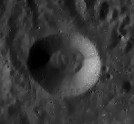 El borde de este cráter es alargado en el lado occidental, dándole una forma que recuerda ligeramente a una gota de agua. El borde está libre de desgaste significativo y las paredes internas se inclinan con una pendiente pronunciada hacia el suelo interior.