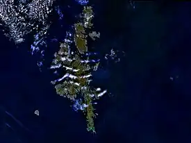 - Anexo:Islas del archipiélago de las Shetland, con una tabla ordenada con la superficie y población de las principales islas del archipiélago.