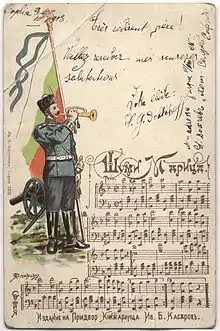 Tarjeta de petolinia a melodía para el himno búlgaro "Shumi Maritsa"