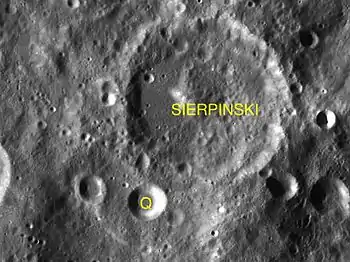 Por convención estos elementos son identificados en los mapas lunares poniendo la letra en el lado del punto medio del cráter que está más cercano a Sierpinski.