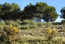 Existen repoblaciones con pino carrasco (Pinus halepensis), debido a su alta rusticidad, en varios puntos. Otras gimnospermas observables son, por orden de mayor a menor abundancia: el pino piñonero (Pinus pinea), el enebro de la miera (Juniperus oxycedrus), la efedra (Ephedra nebrodensis) y la sabina mora (Juniperus phoenicea). Los otros pinos abundantes en las sierras albacetenses, el pino negral (Pinus pinaster) y el laricio (P. nigra subsp. salzmannii) no se dan en la zona.