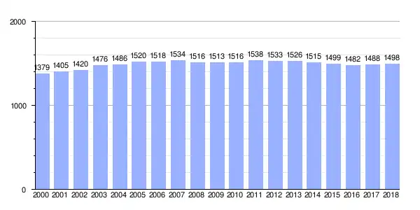 | Gráfica de evolución demográfica de Sigrás entre 2000 y 2018 |